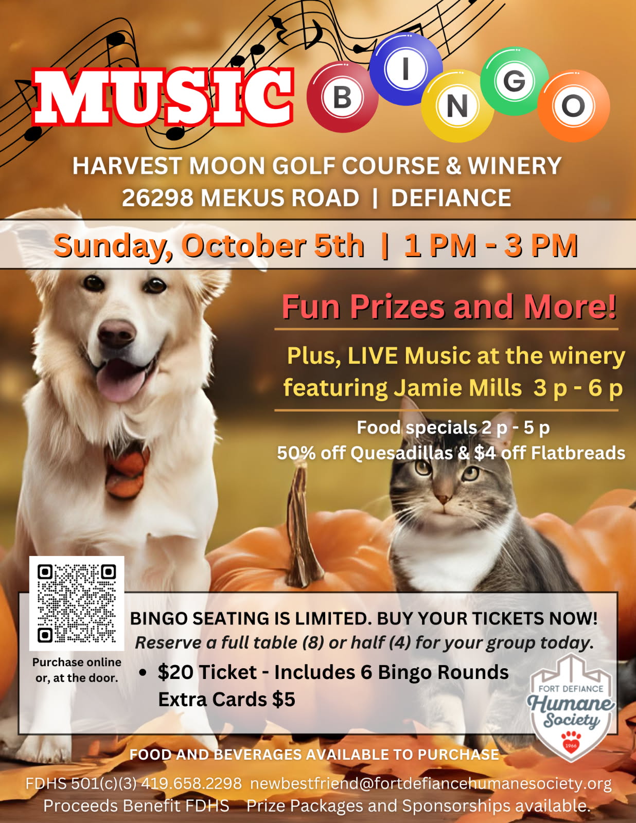 Tunes & Tails: Music Bingo Sunday – October 5th