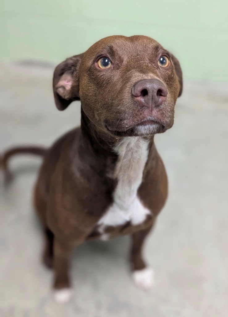 He seems very curious about the other shelter dogs and has not shown any signs of aggression toward them or our staff. His leash manners are still a work in progress, but with a little training and consistency, we know he will pick things up in no time.