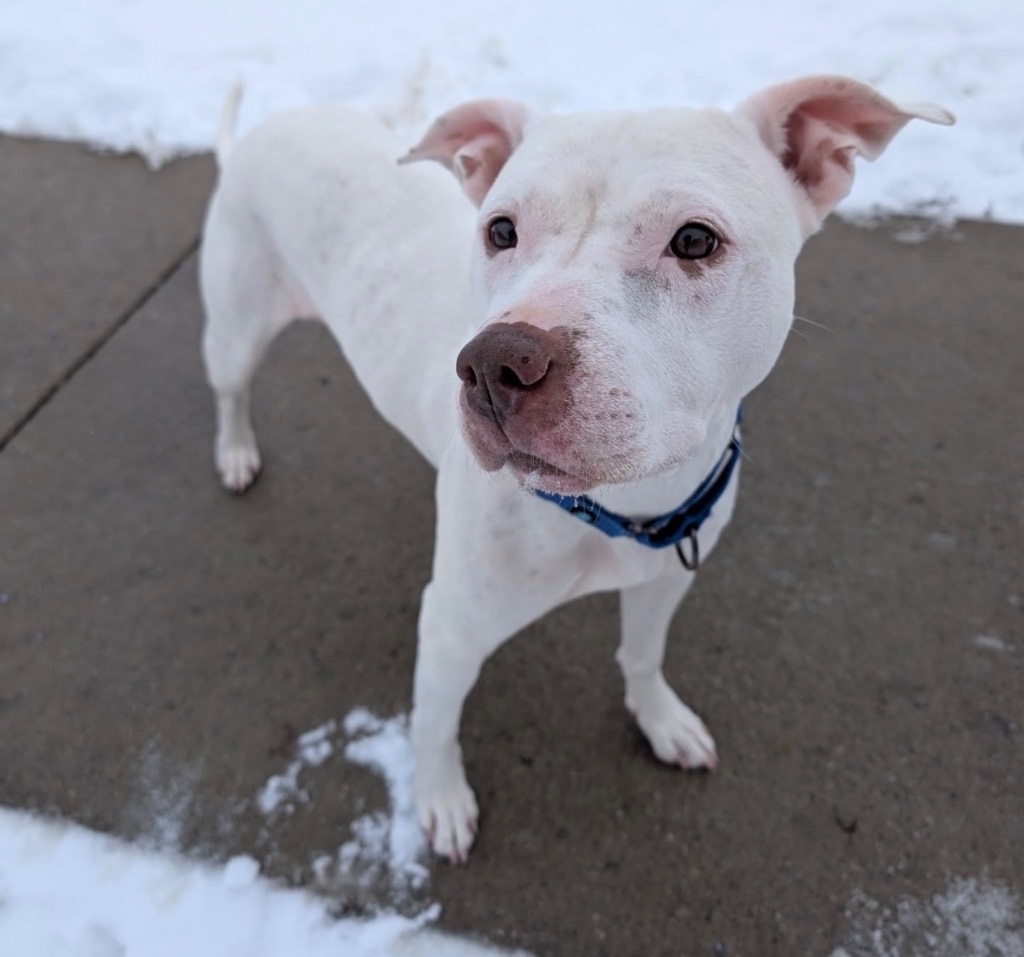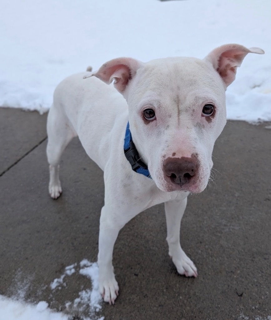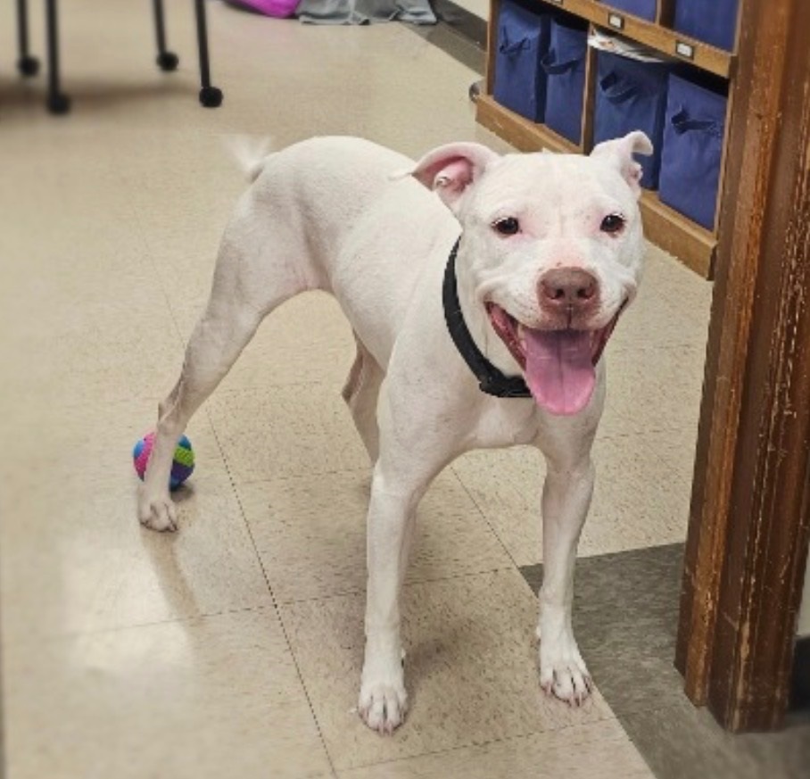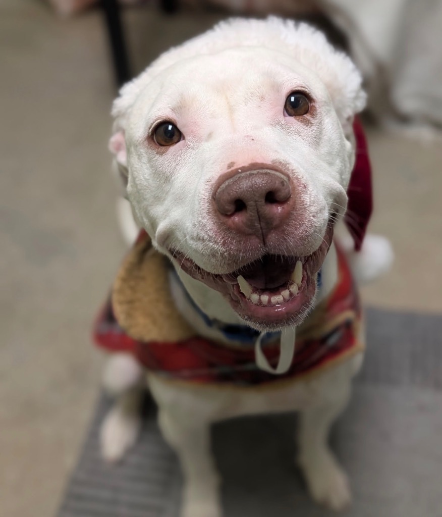 Britney is a gorgeous white dog and a natural born star who brings full pop-princess energy everywhere she goes. She lives for the spotlight, loves an audience, and isn’t shy about singing her heart out. She might not be everyone’s ideal playlist, but her bold spirit and big personality are destined to be someone’s dream dog.