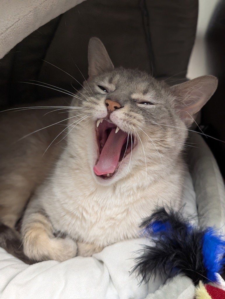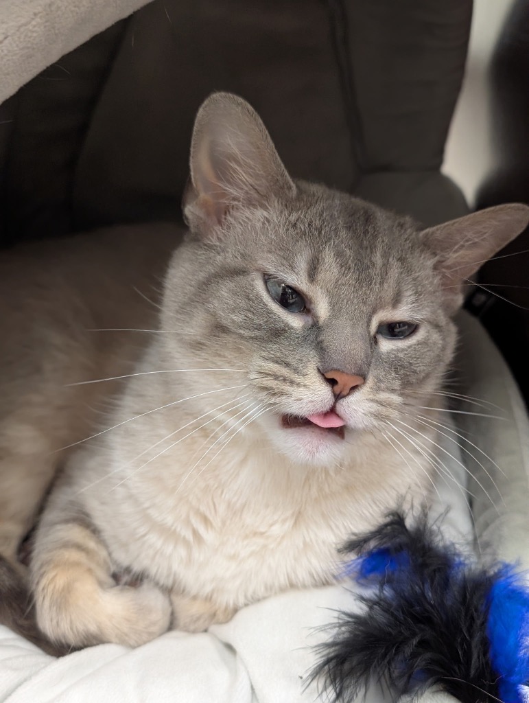 We were told that Dreamy does not have experience living with other animals and has always seemed content being the only princess in the palace. Dreamy is used to a peaceful, low-key environment and likely wouldn’t be a fan of living in a loud, active household. She has only known indoor life and is used to being pampered and adored.