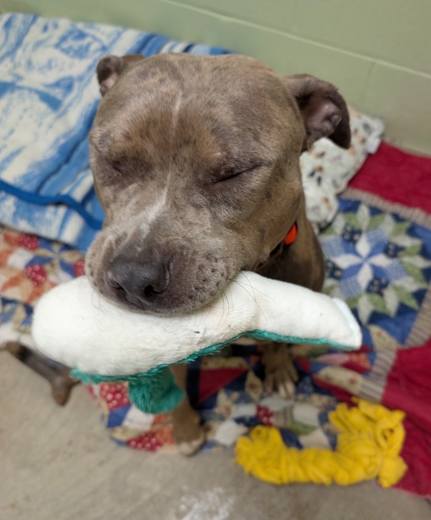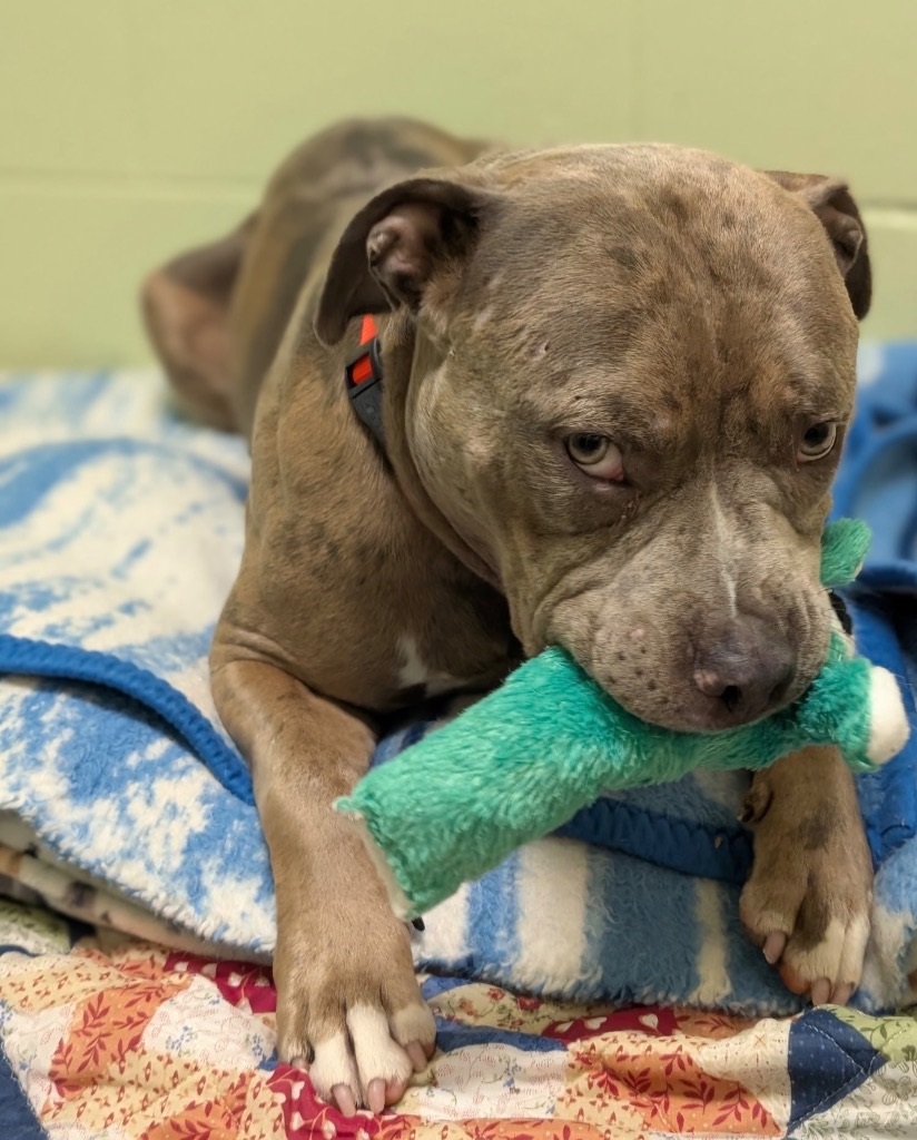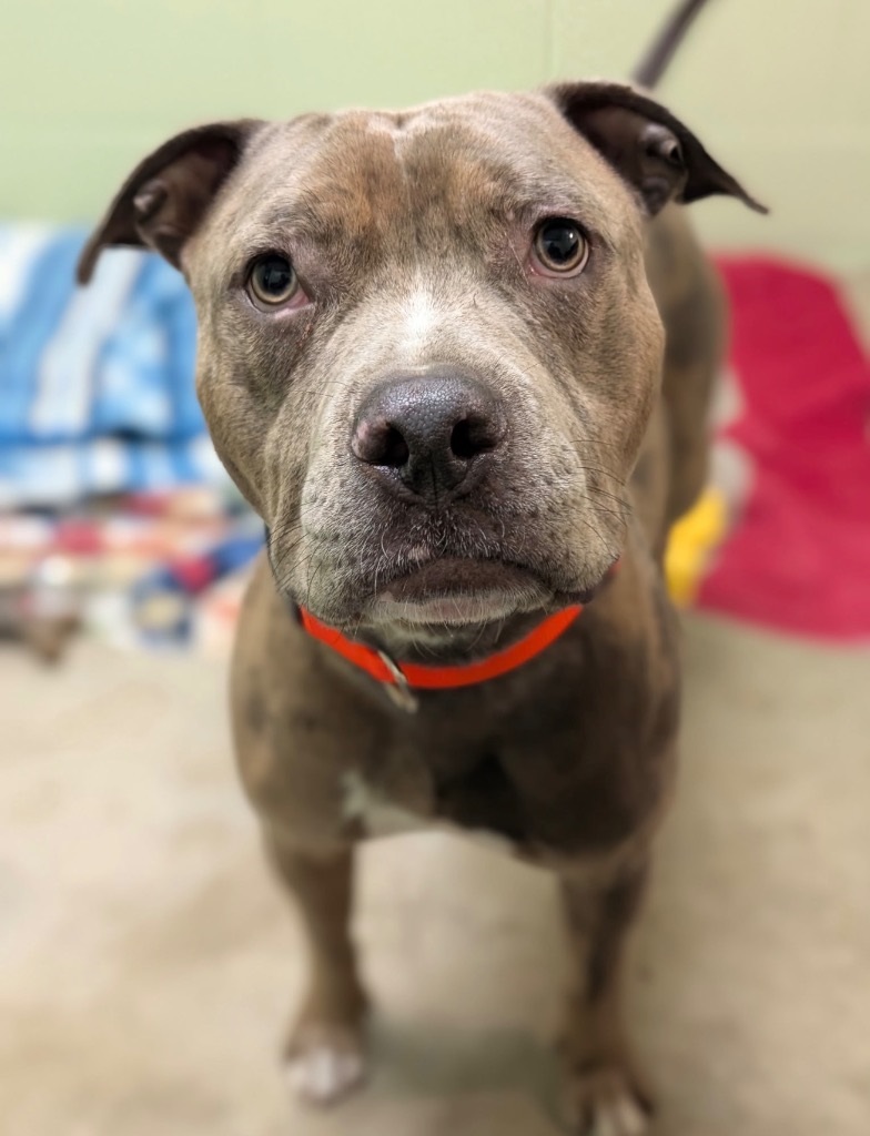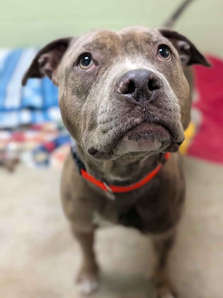 Meet Elliott, a gorgeous spotty bully mix with a super sweet personality and a big love for cuddles. Elliott was found as an injured stray after being hit by a car. His injuries were minor, and after a trip to the vet, some pain medication, lots of rest, and plenty of cuddles, he is starting to feel much better. Through it all, Elliott has remained a total sweetheart and is ready to start looking for his forever family.