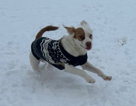 I’m all about toys, treats, and playtime. I love bouncing around, chasing stuff, and just having fun. And when I finally chill out, I turn into the snuggliest little cuddle buddy ever. I’ll happily snuggle up, lean in for pets, and give kisses.