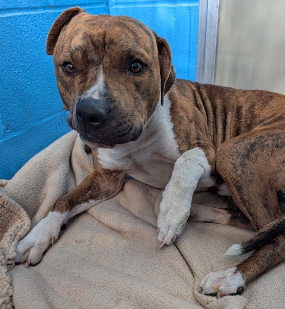 Sloth is a very special boy who recently came to FDHS as a stray. It’s pretty obvious that life has not been easy for him, and our veterinary team believes he may have been hit by a car at some point in his past without ever receiving the care he needed. Because of this, Sloth looks and moves a little differently, but his quality of life does not seem to be impacted. He smiles and wags his tail like any of the other good boys!